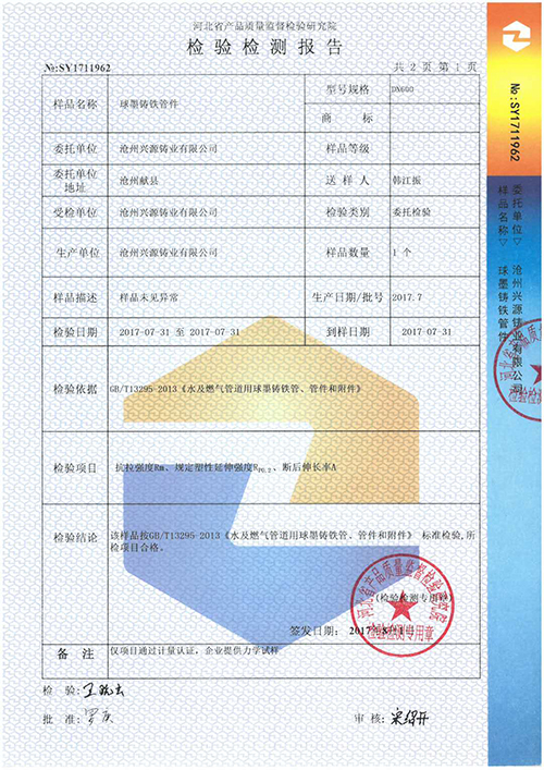 滄州興源鑄業(yè)有限公司主要產(chǎn)品有:K型承套、K型彎頭、承插變徑、承插彎頭、盤插(乙管)、盤承(甲管)、全盤三通、雙承中盤三通、雙盤彎頭等系列以及各種鑄件,產(chǎn)品用于大中小型企業(yè),如化工、電業(yè)、冶金等。